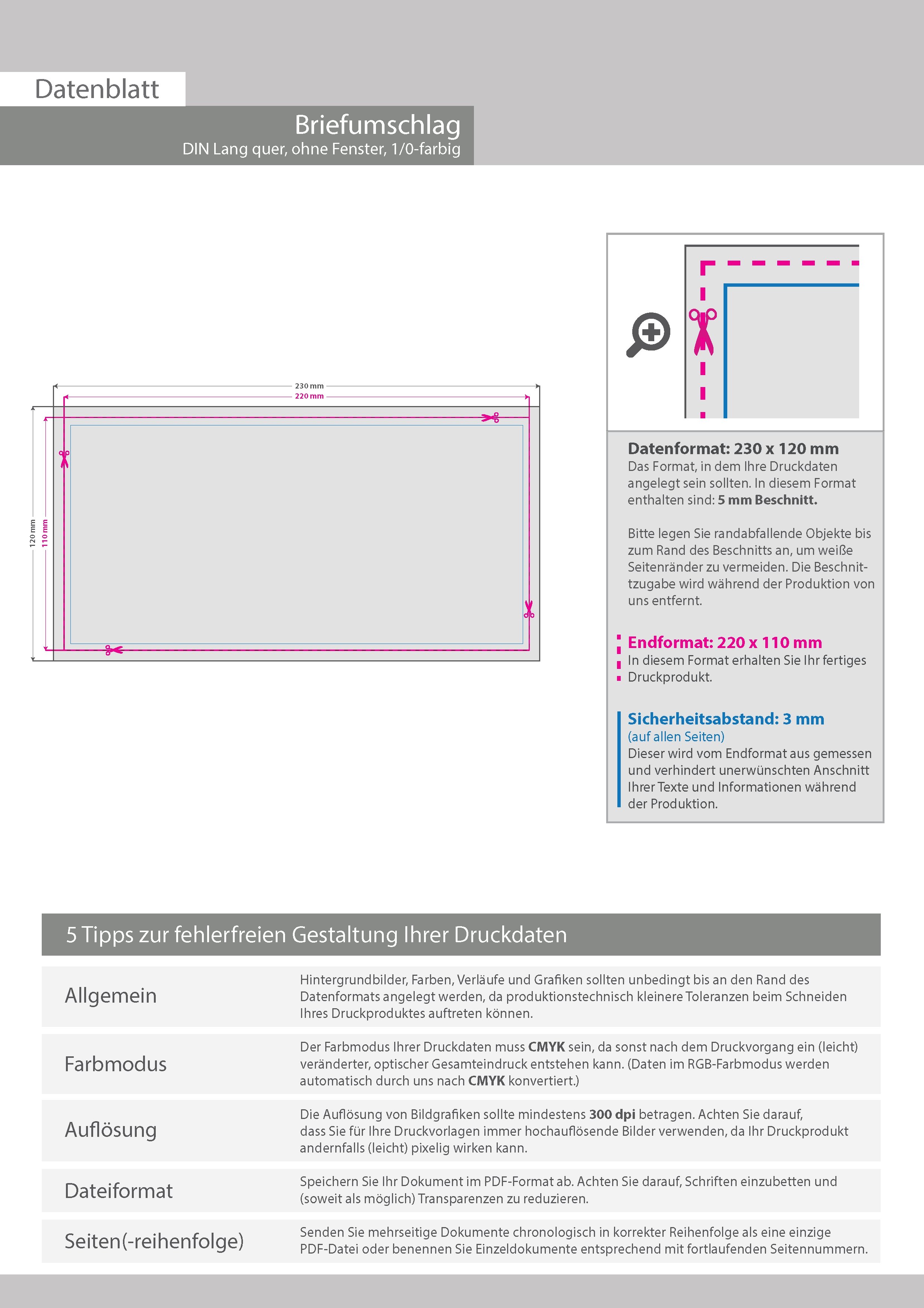 Briefumschlag DIN lang quer, haftklebend ohne Fenster, einseitig 1/0 schwarz-/weiß bedruckt