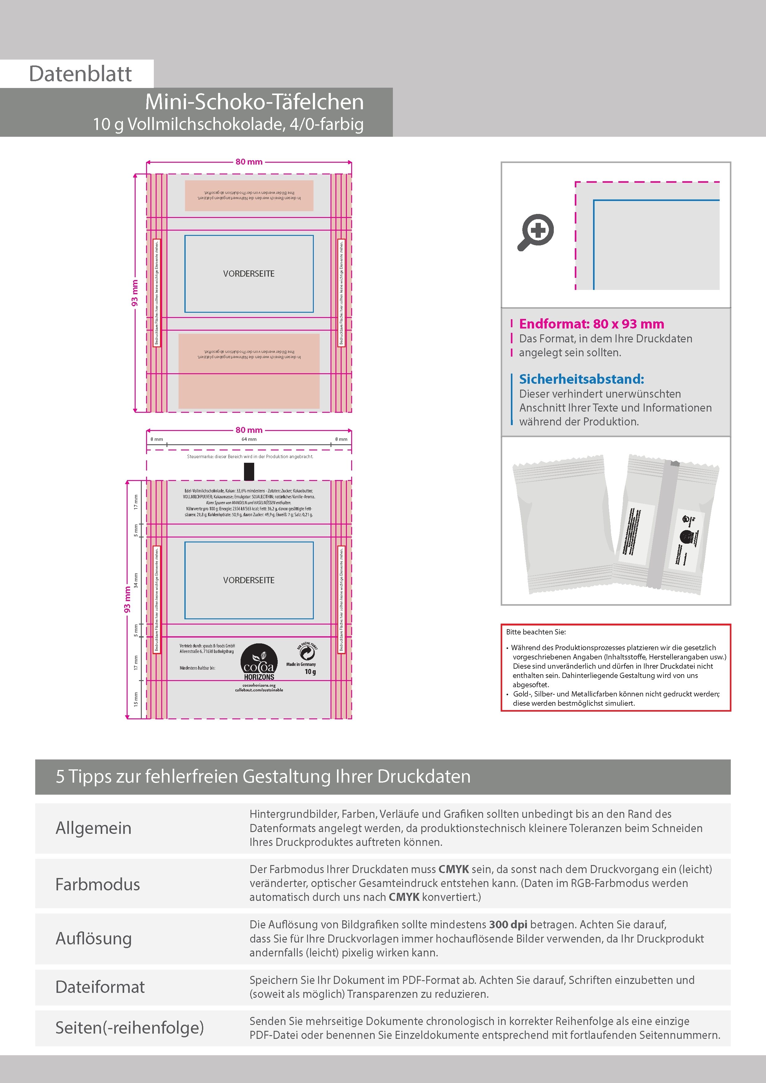 Mini-Schoko-Täfelchen 10g Vollmilchschokolade, 4/0 farbig einseitig bedruckt