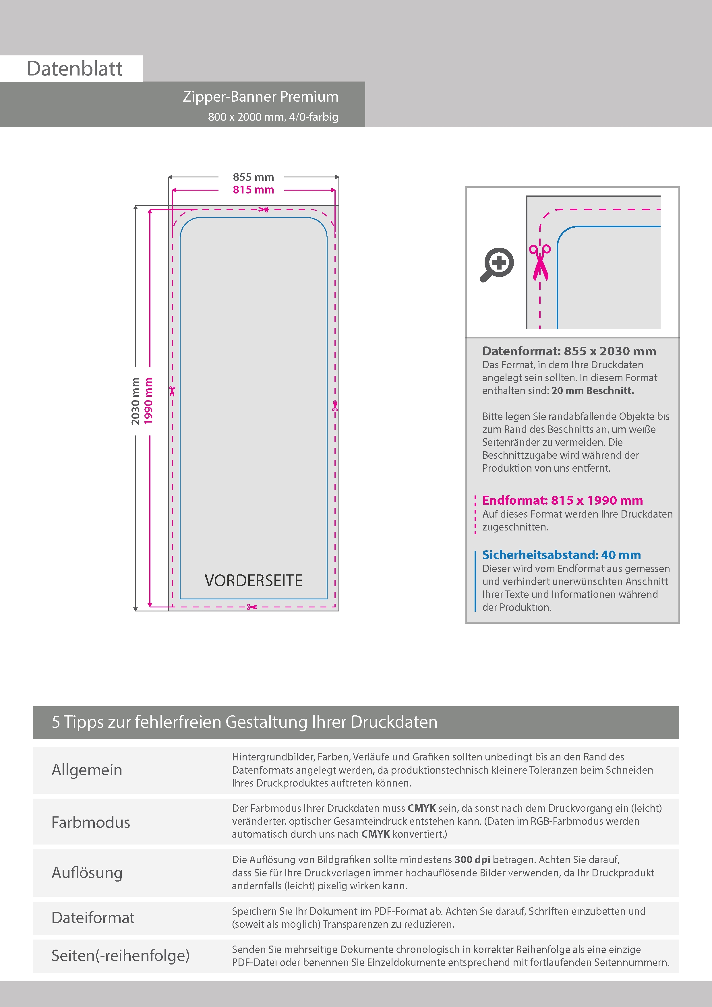 Ersatzdruck für Zipper-Banner Premium 80 x 200 cm, einseitig bedruckt