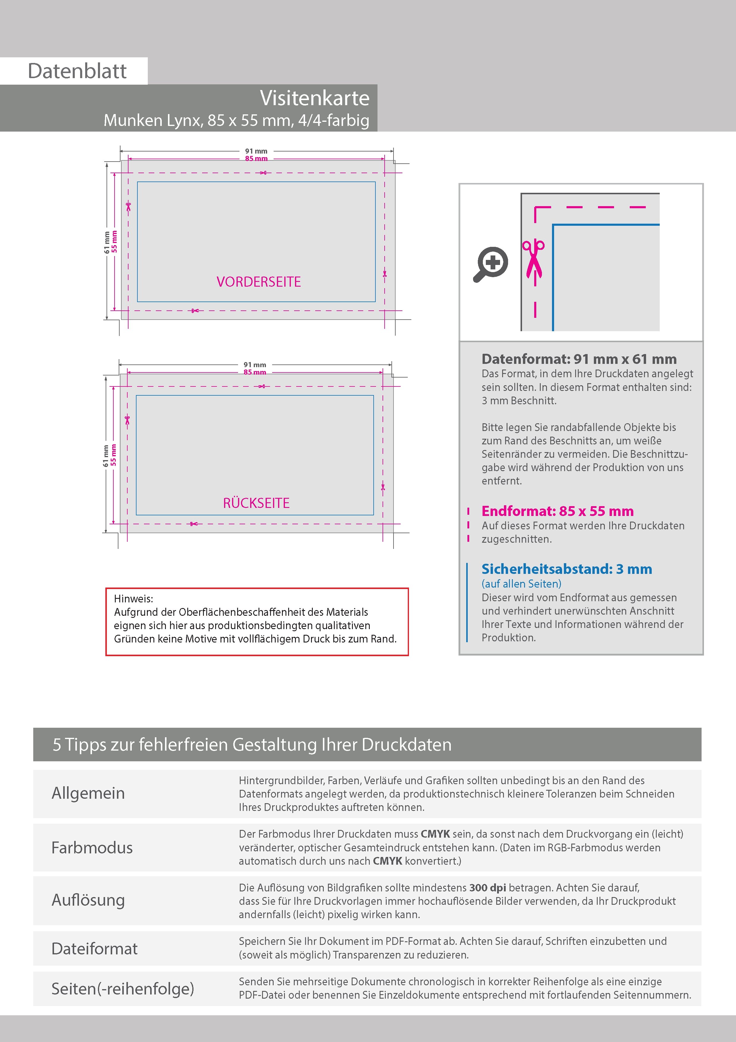 Visitenkarten quer 4/4 farbig 85 x 55 mm (beidseitiger Druck), Munken Polar
