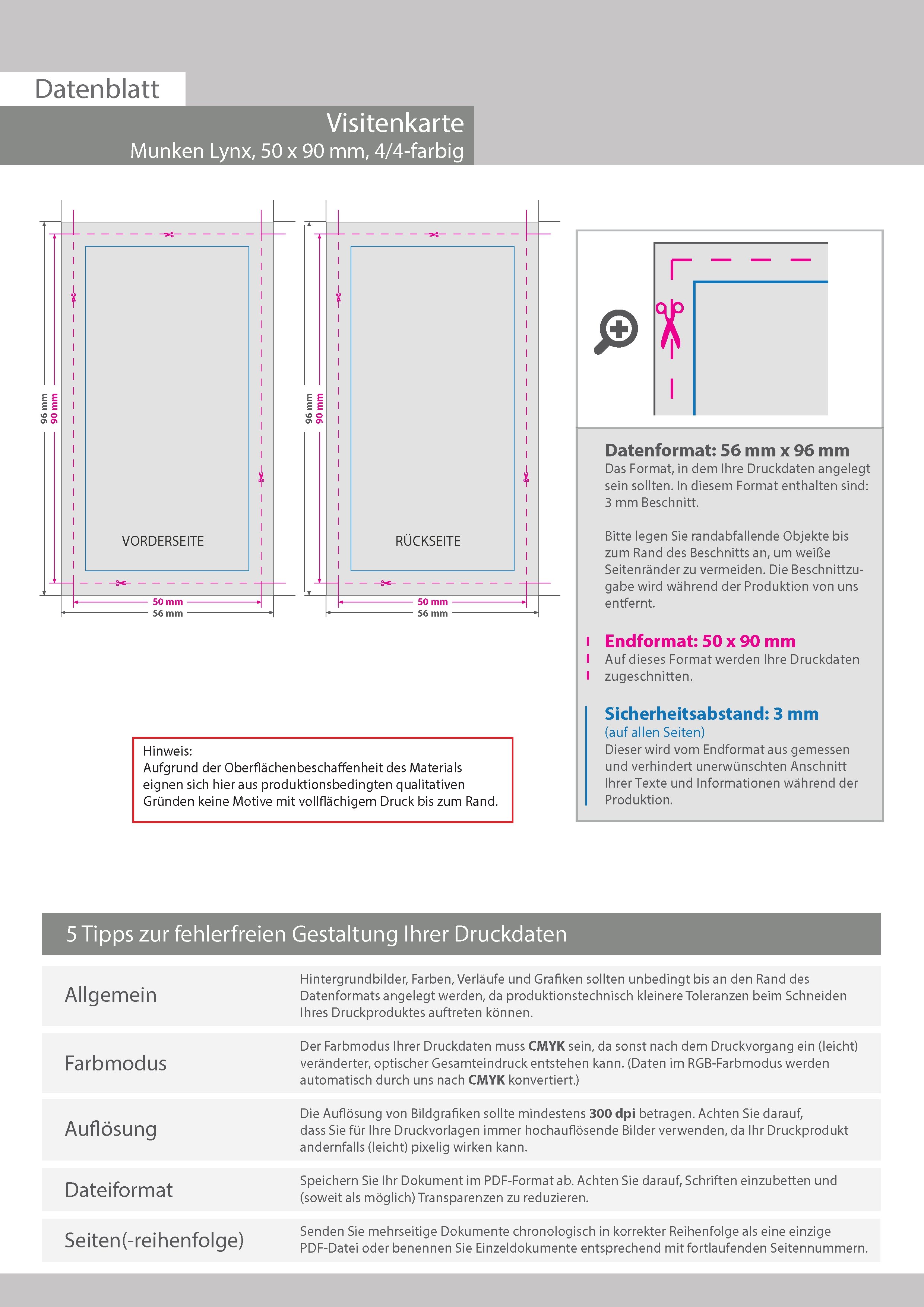 Visitenkarten hoch 4/4 farbig 50 x 90 mm (beidseitiger Druck), Munken Polar