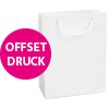 Damit Sie für Ihr Unternehmen das optimale Produkt finden, halten wir in unserem Onlineshop Papiertaschen in unterschiedlichen Größen bereit. Wir bieten Ihnen unsere Modelle mit Kordeln in verschiedenen Farben an; so finden Sie mit Sicherheit einen Henkel, der ideal mit Ihrem Corporate Design harmoniert. Die Taschen aus 170 g/m2 starkem Bilderdruckpapier bedrucken wir außen nach Ihren Vorstellungen, innen bleiben sie weiß. Die glänzende Folienkaschierung sorgt für eine besonders elegante Optik und macht Ihre individuellen Taschen widerstandsfähiger gegen beispielsweise Regen.